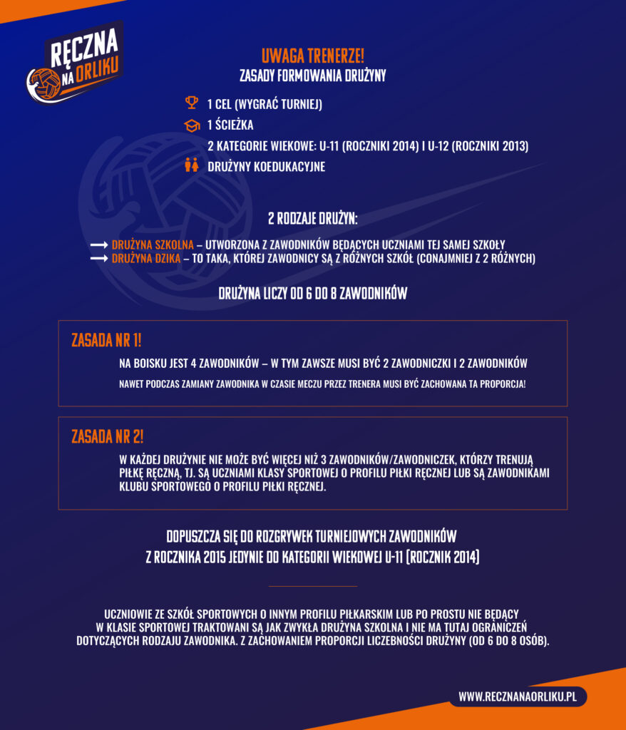 Program jest skierowany do szkół podstawowych, ale nie tylko! Zapisać swoją może każdy, kto nawet w niewielkim stopniu interesuje się piłką ręczną. Wystarczy znaleźć minimum sześciu chętnych w wieku 11 – 12 lat. Ważna jest odpowiednia motywacja i chęć poznania podstaw gry. Ruszaj z dzieciakami w region i walcz o wygraną!!!